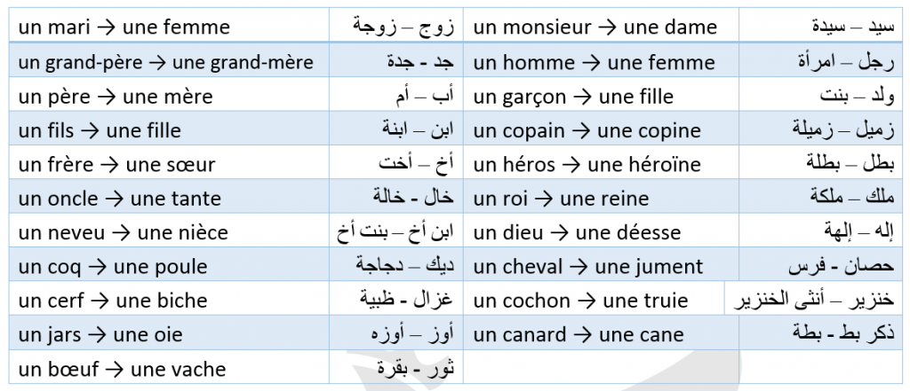 maître → maîtresseمعلم – معلمة Suisse → Suissesseسويسري – سويسرية